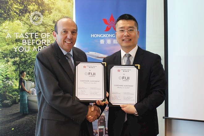 Hong Kong Airlines and Fiji Airways signed a codeshare agreement today to offer customers enhanced connectivity and seamless connections between six major destinations in the South Pacific and Asia.