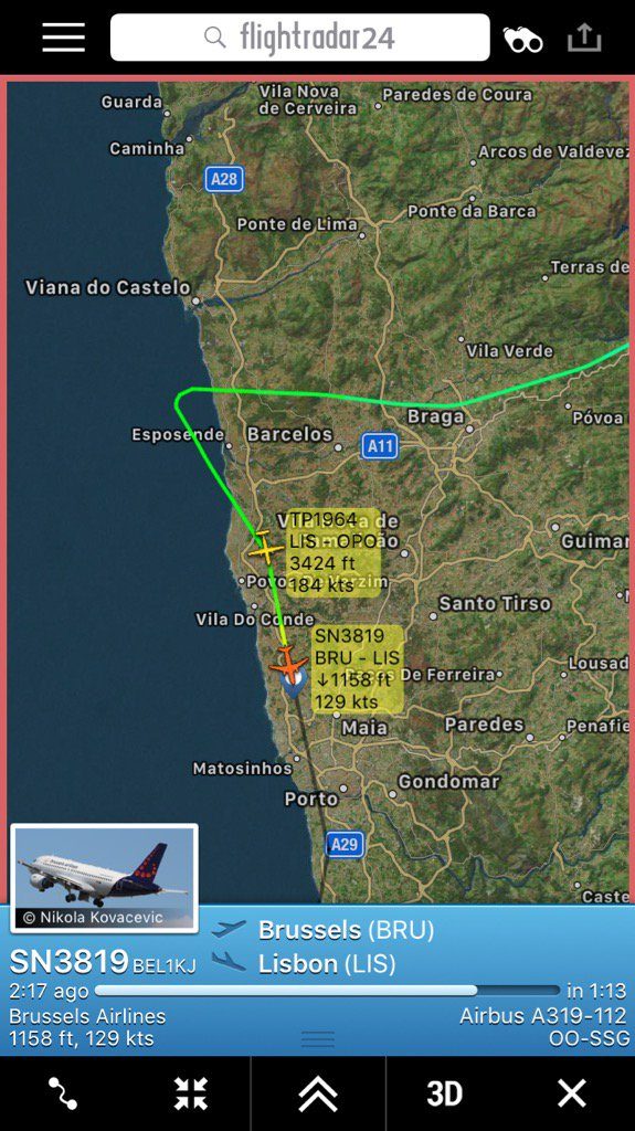 Brussels Airlines flight SN3819 towards Lisbon was forced to divert to Porto airport this evening.