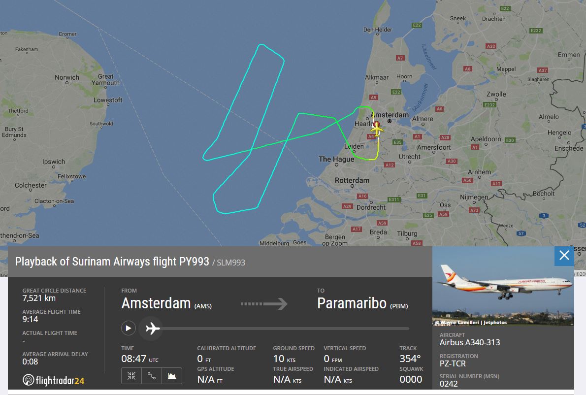 A flaps problem on this Surinam Airways Airbus A340-313 registered PZ-TCR from Amsterdam to Paramaribo, forcing the pilots to return twice to Amsterdam Schiphol! A detailed story below: