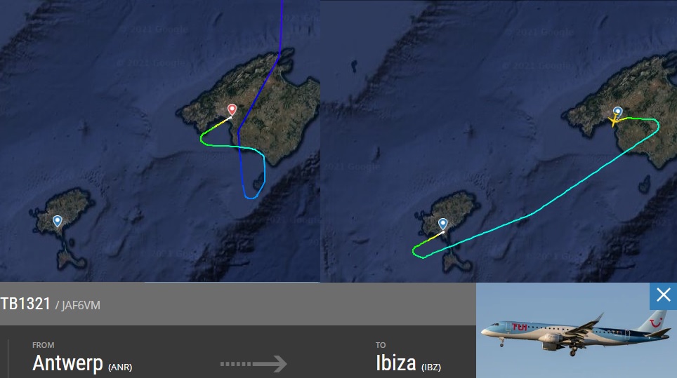 TB1321 ANR - IBZ, diverted to PMI and an hour later hopped over to its final destination IBZ.