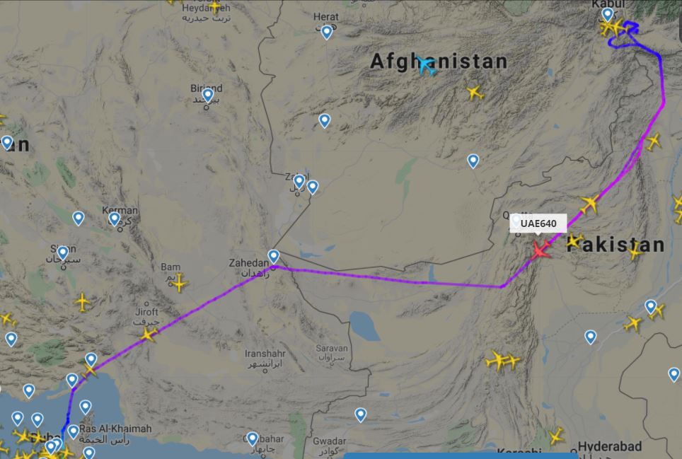 Emirates flight #EK640 from Dubai (B777-300ER reg A6-EPT) is turning away from Kabul (understandably!) and may fly to an alternate airport or return home.